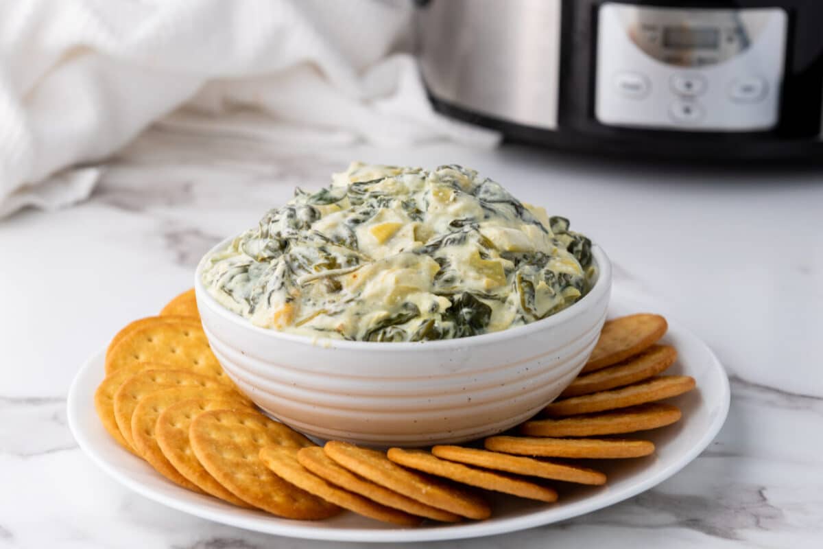 This Slow Cooker Spinach Artichoke Dip is a warm, cheesy, and creamy appetizer that’s easy to prepare and perfect for any gathering. Made with fresh spinach, tender artichokes, and a blend of cream cheese, sour cream, and mozzarella, it’s packed with rich flavor in every bite.