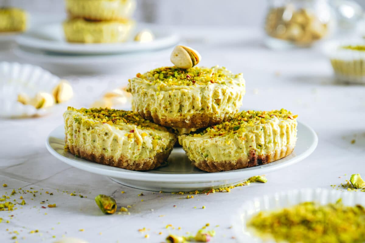 These mini pistachio Greek yogurt cheesecakes are smooth, lightly sweet, and rich with nutty flavor, set on a soft almond flour crust. This no-bake dessert offers a lighter option without sacrificing texture or taste. Naturally gluten-free and easy to customize, these bite-sized treats work beautifully for spring and summer.