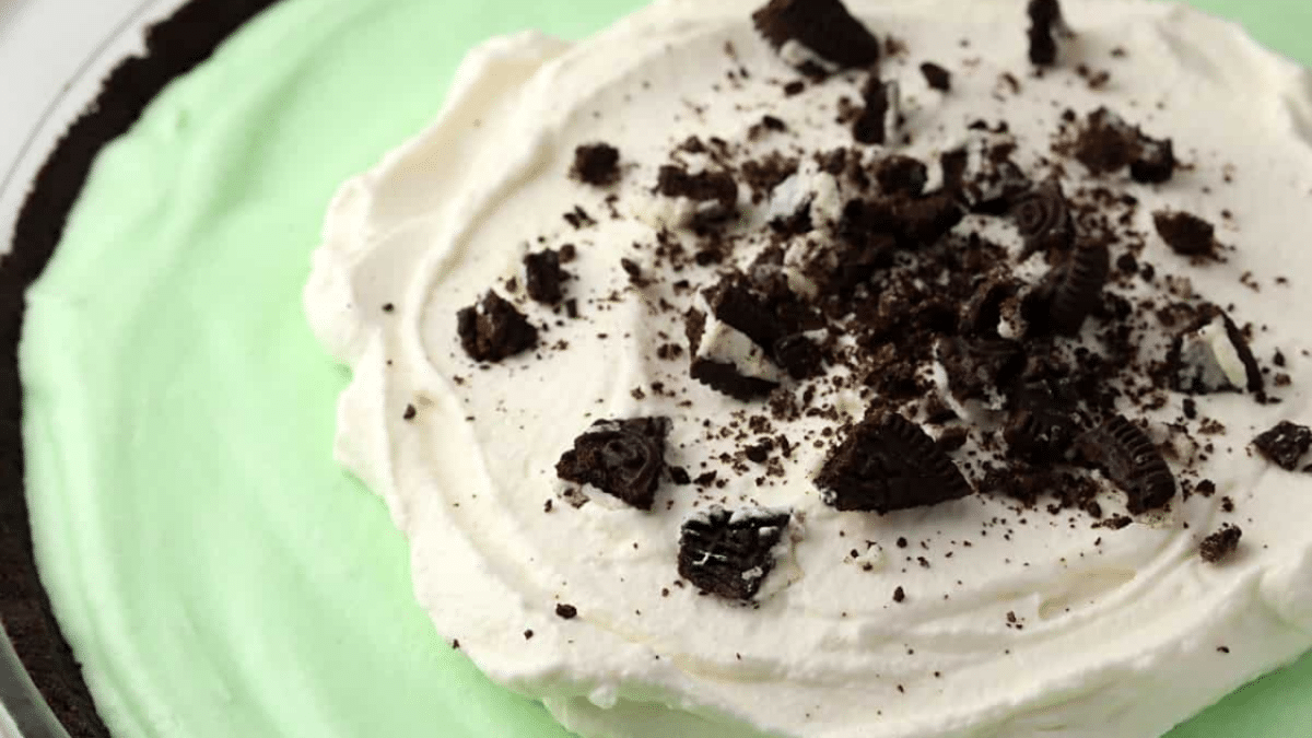Grasshopper pie is an easy, no-bake pie made with an Oreo cookie crust and fluffy marshmallow mint filling. It’s perfect for serving for Christmas or St. Patrick’s Day.