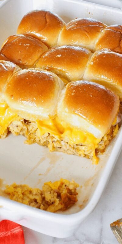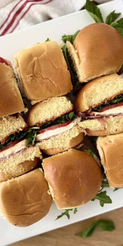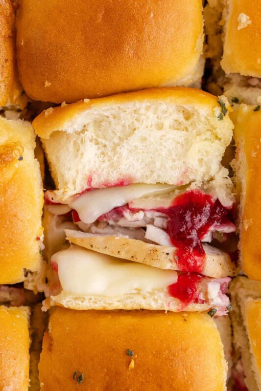 These Turkey Sliders are cheesy, savory and the perfect way to use up leftover Thanksgiving turkey. Made with soft Hawaiian rolls, melted mozzarella cheese and a touch of cranberry sauce, they’re everything you love about a holiday dinner – packed into bite-sized form.