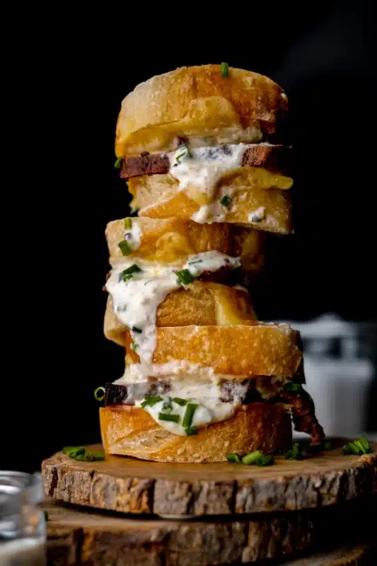 Elk steak meets sourdough baguette with melted Irish cheddar cheese and a drizzle of homemade horseradish cream sauce. It’s like the perfect elk steak sandwich in a miniature version. If you’ve ever wanted a way to share your wild game with others but don’t have a lot to go around, this venison appetizer is the perfect recipe for you!