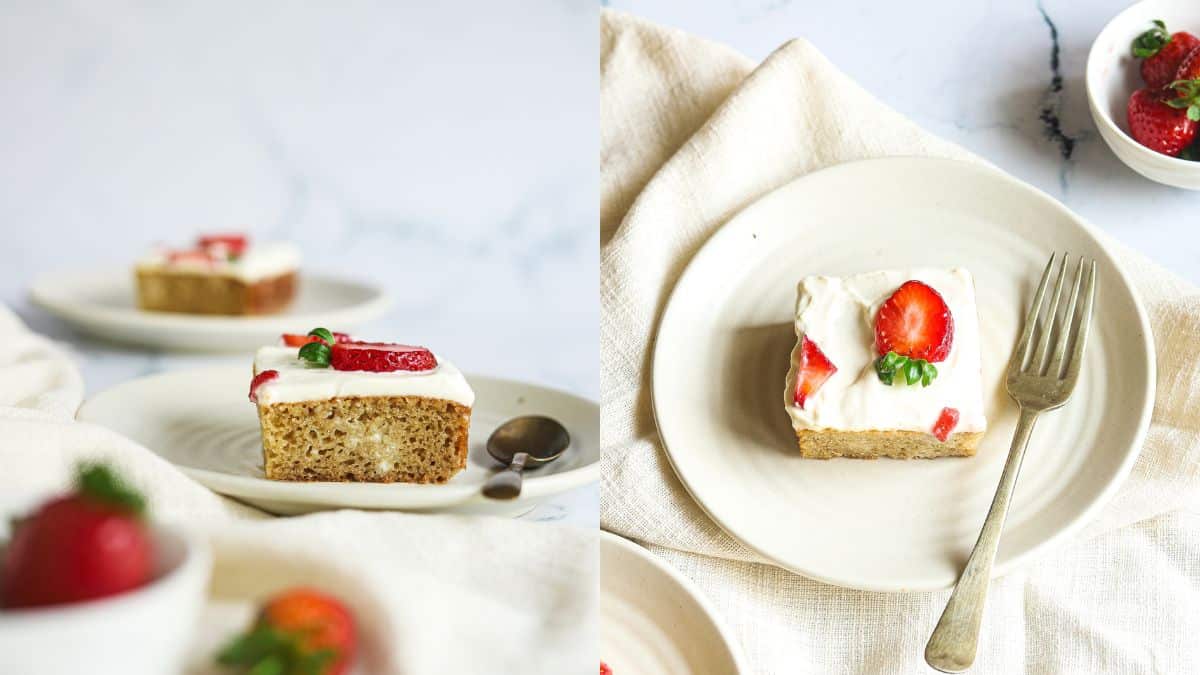 This Matcha Coconut Tres Leches Cake features a matcha green tea sponge cake soaked with 3 different types of milk. It’s a light, yet moist and flavorful cake that isn’t too heavy. Get the Recipe.