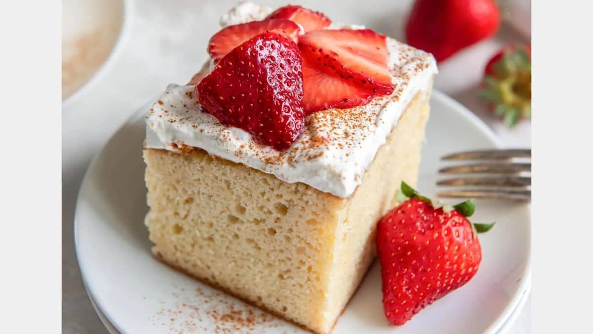 This extra moist sponge cake is soaked in a creamy milk mixture, then topped with fresh whipped cream and strawberries. You will love how easy it is to make this traditional Mexican dessert from scratch. Get the Recipe.
