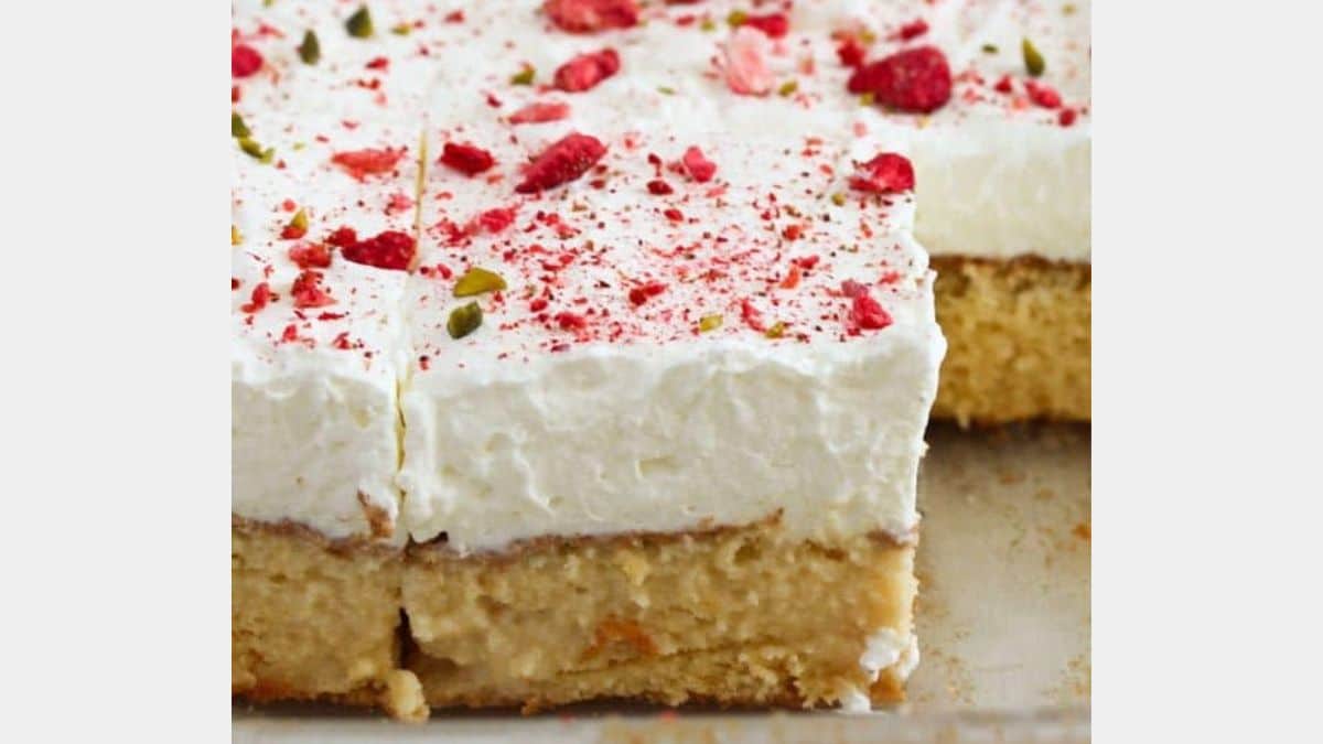 Incredibly moist Mexican dessert recipe – tres leches or three milk cake. Get the Recipe.