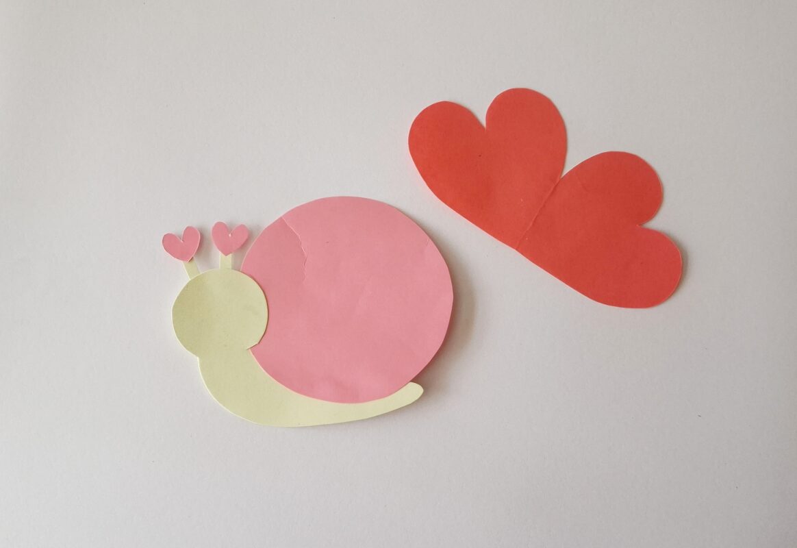 Select colored craft papers for the snail, at least 3 different colors. Trace the template patterns on the selected colored craft papers and use a pair of scissors to cut out the traced pattern neatly. The template includes patterns for the body, shell, heart card and the antennas.